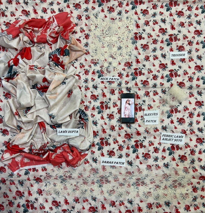 Baroque Lawn 3-Piece Unstiched With Embroidered Patches