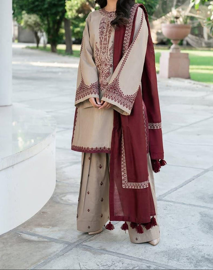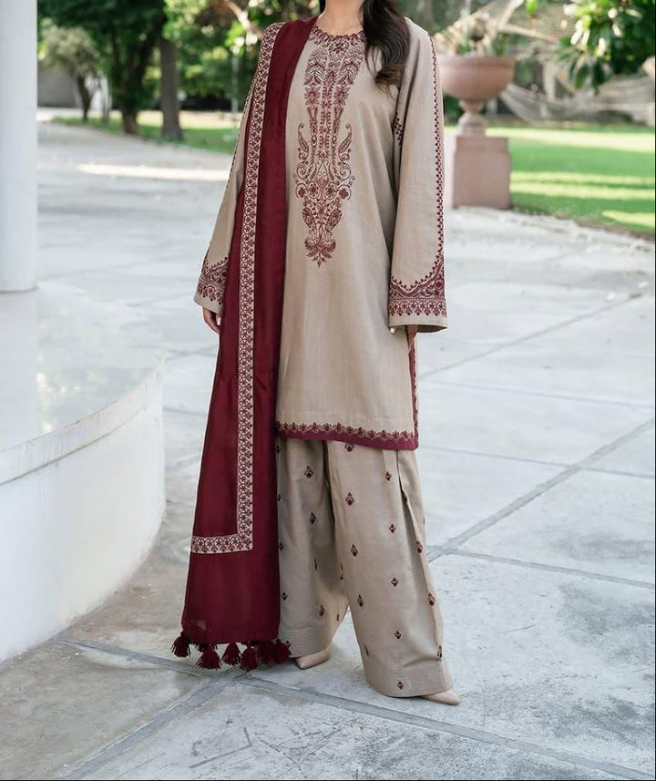 WINTER EMBROIDERY COLLECTION 3PC (DHANAK FABRIC) TT08